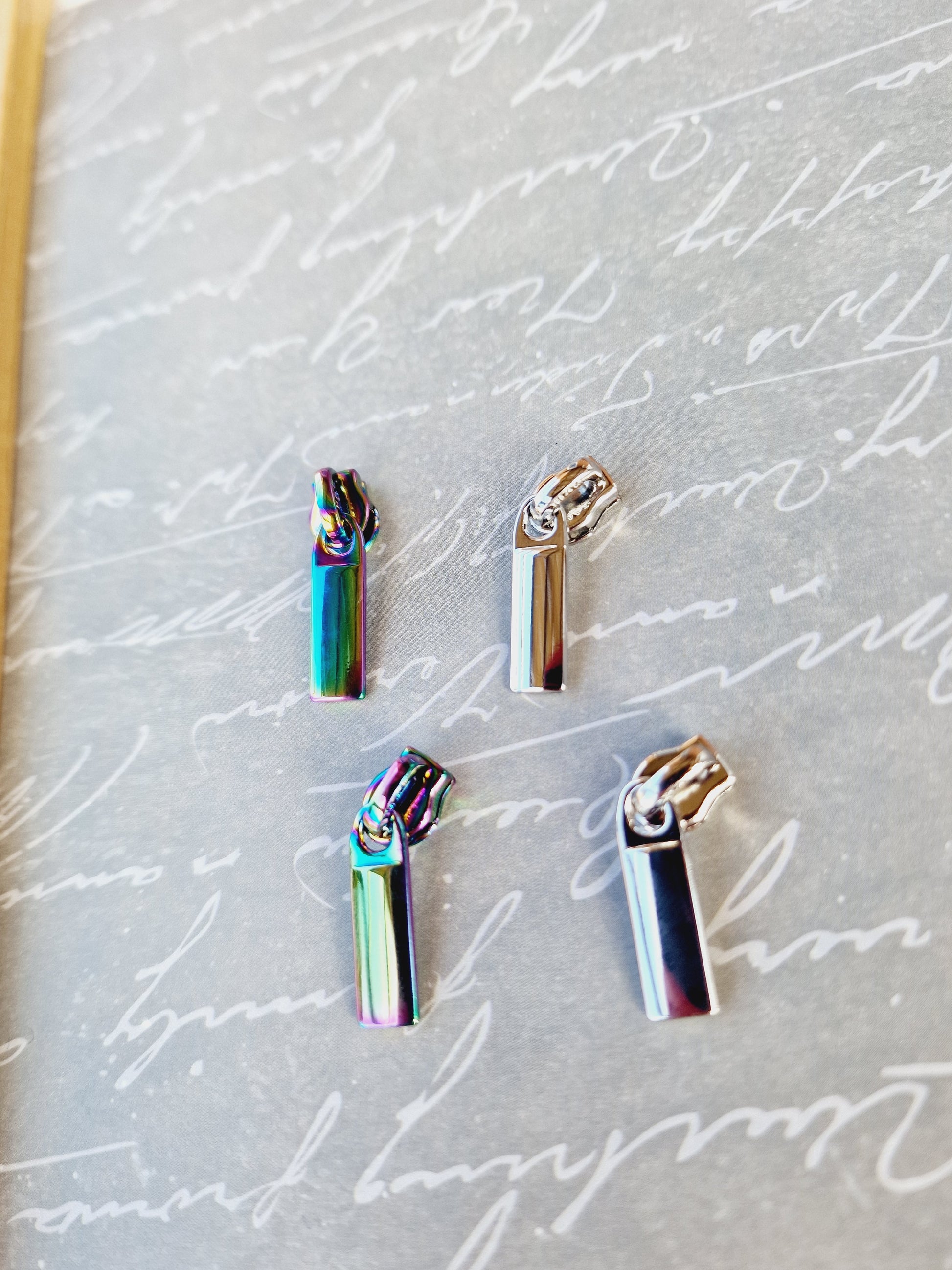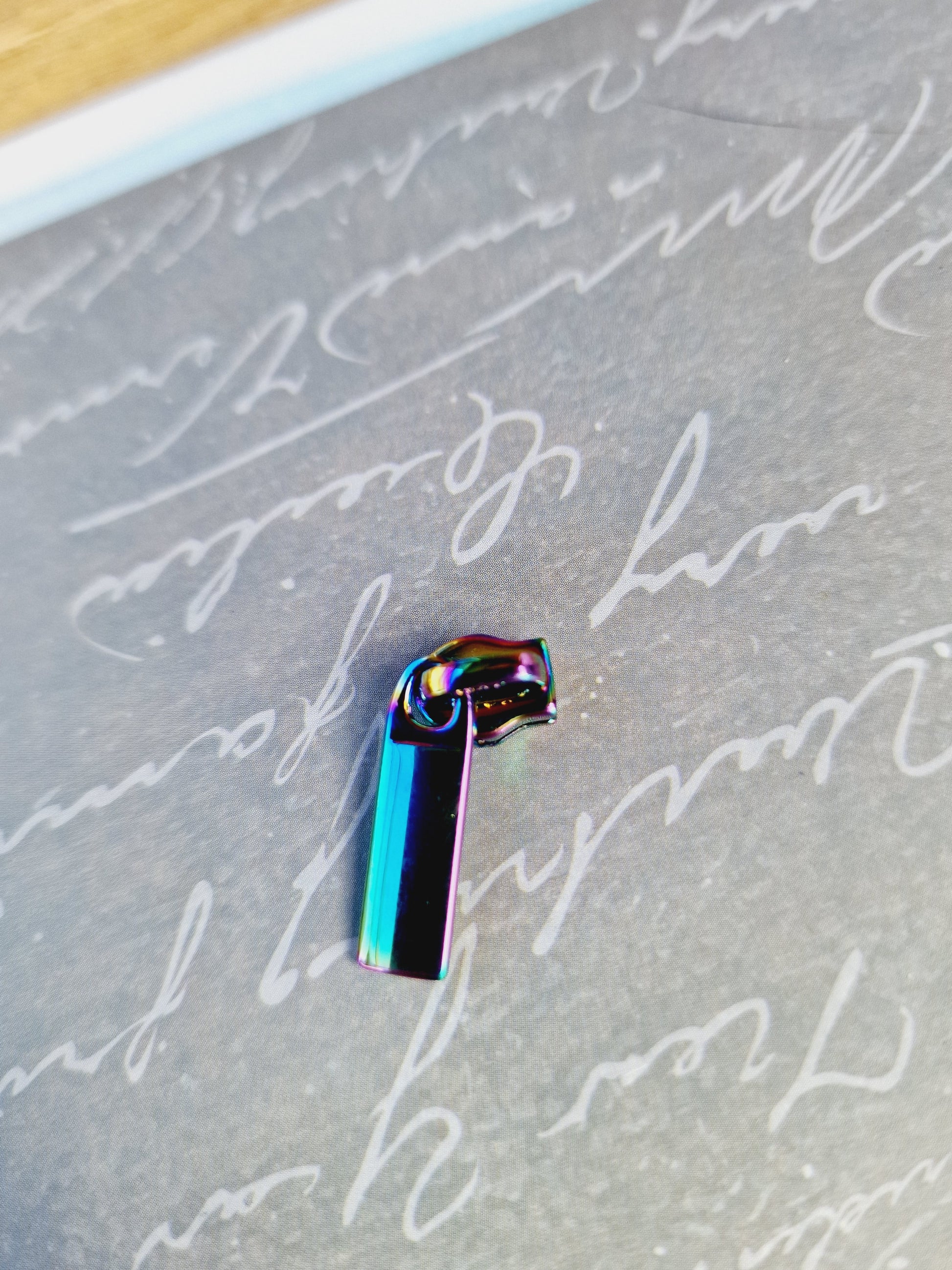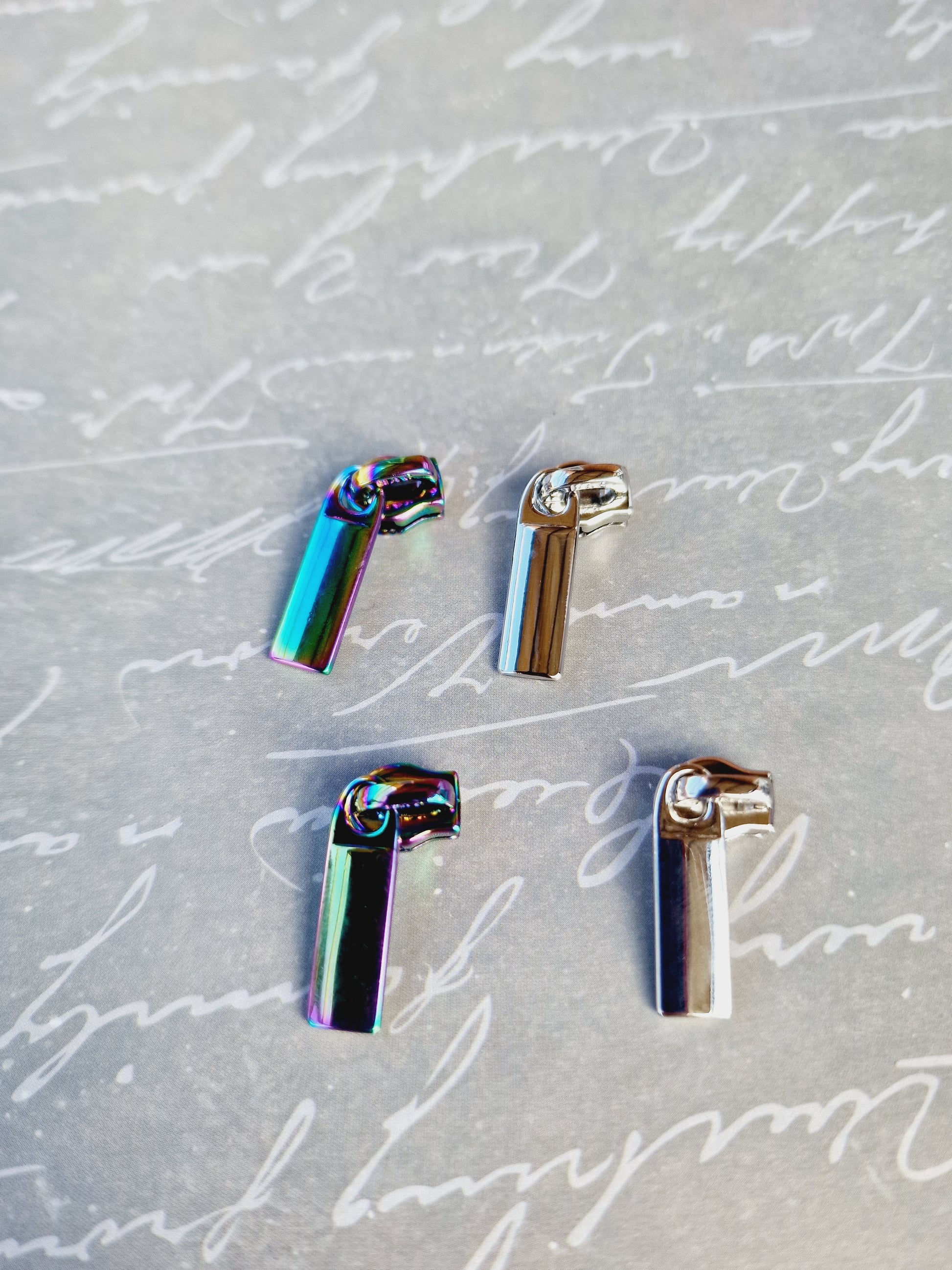 Size 3 zip pull RECTANGLE DROP , RAINBOW AND SILVER
